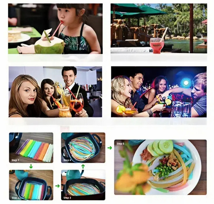 1. Material: Rice+Cornstarch 2. Eco-friendly:100% degradable within 90-180 days 3. Color:Original, Yellow, Orange, Pink, Green, Blue, Black. 4. Size: 6*200mm, 8*200mm, 10*200mm, 12*200mm 5. Advantage: plant based, renewable 6. Application: restaraunt, cafe, milk tea shop, bars etc