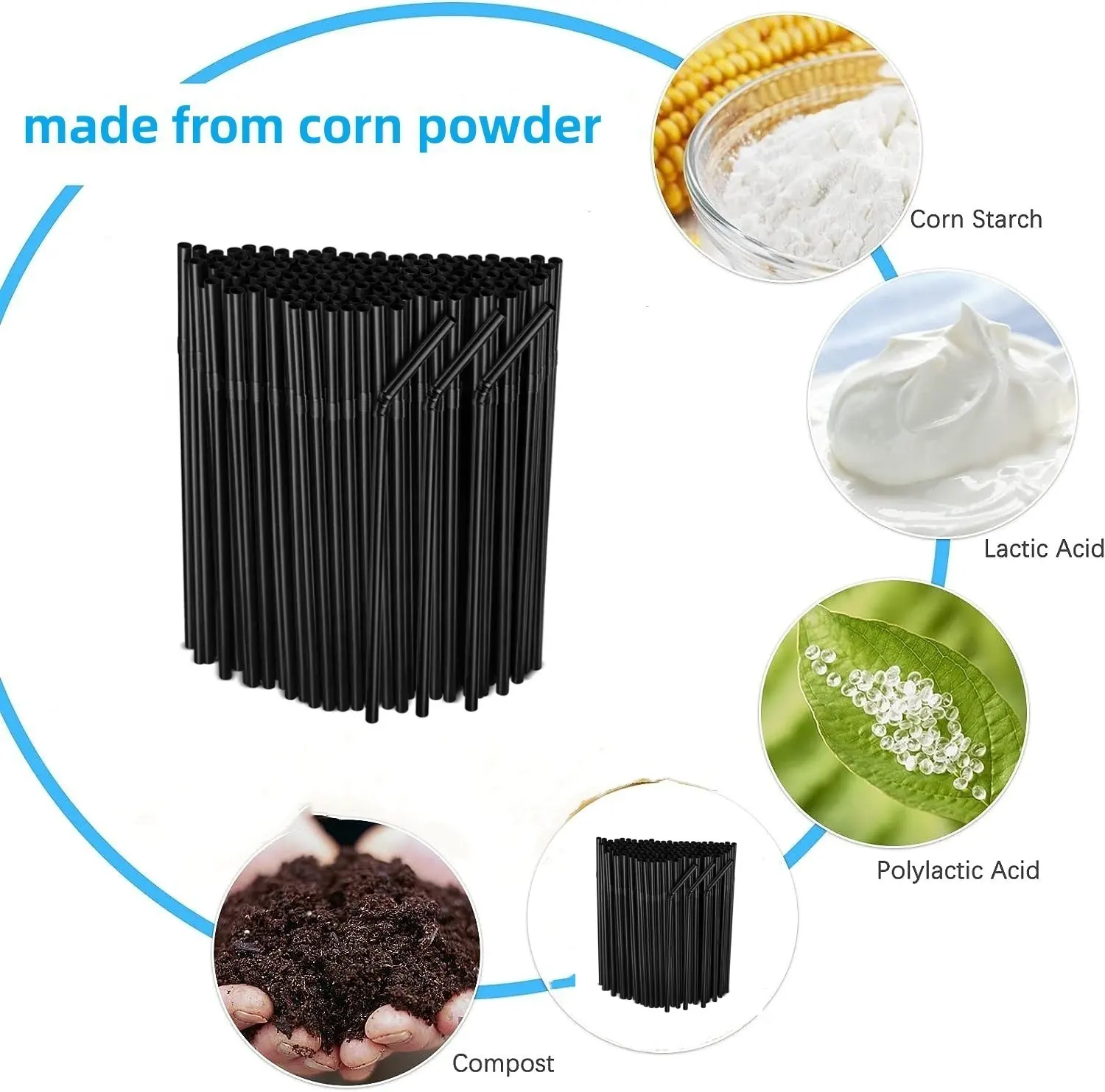 1. Material: PLA 2. Eco-friendly:100% degradable within 90-180 days 3. Color: Black, White or Custom Pantone 4. Size: 6*190mm, 6*230mm or custom size 5. Advantage: Plant based, Renewable,Compostable 6. Application: Restaraunt,Cafe, Milk tea shop, Bars etc